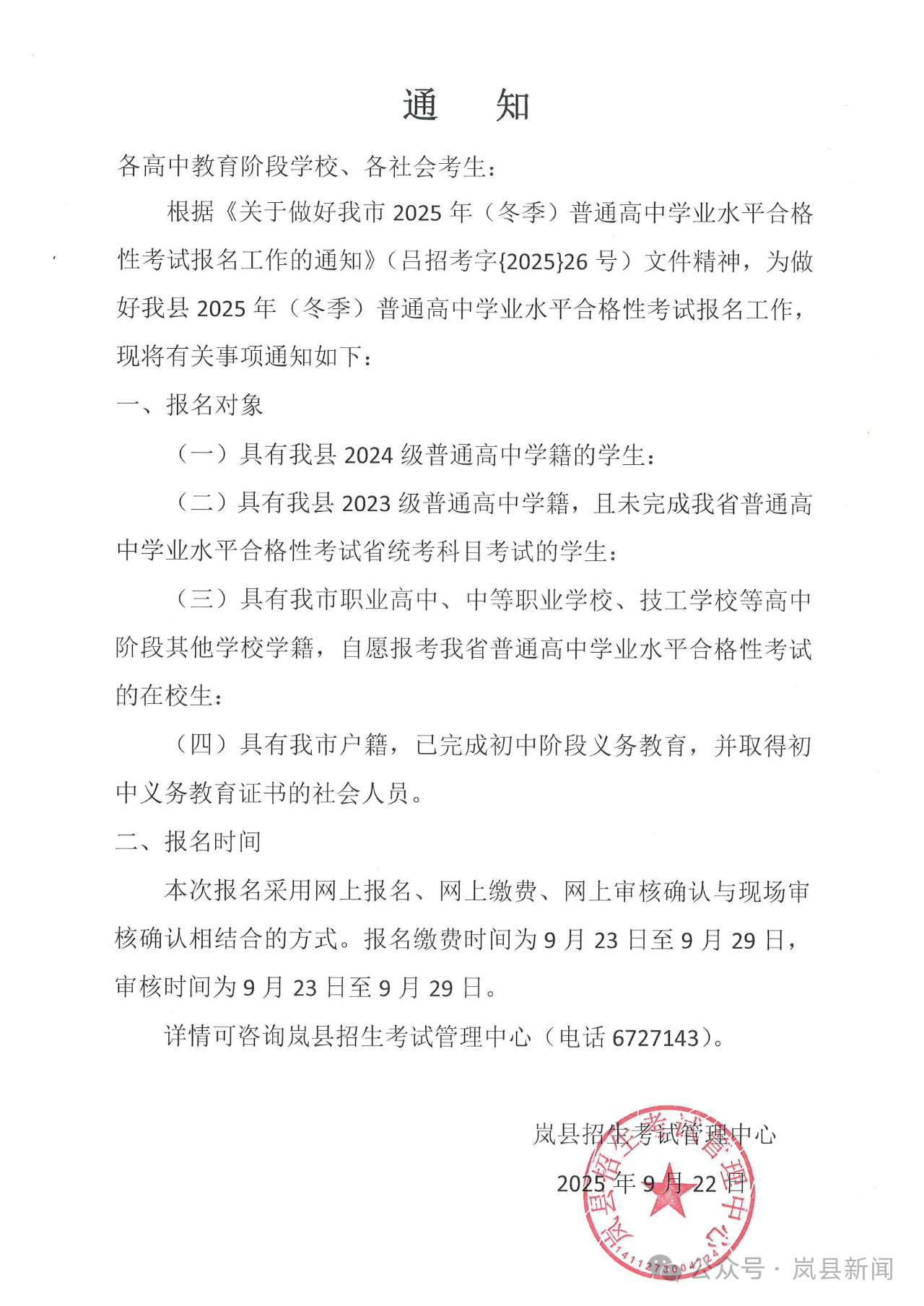 【通知】我縣2025年(冬季)普通高中學(xué)業(yè)水平合格性考試報名工作通知